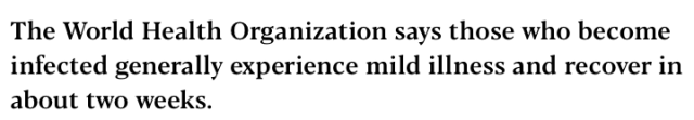 According to the WHO, “The most commonly reported symptoms [COV-19] included fever, dry cough, and shortness of breath, and most patients (80%) experienced mild illness.”