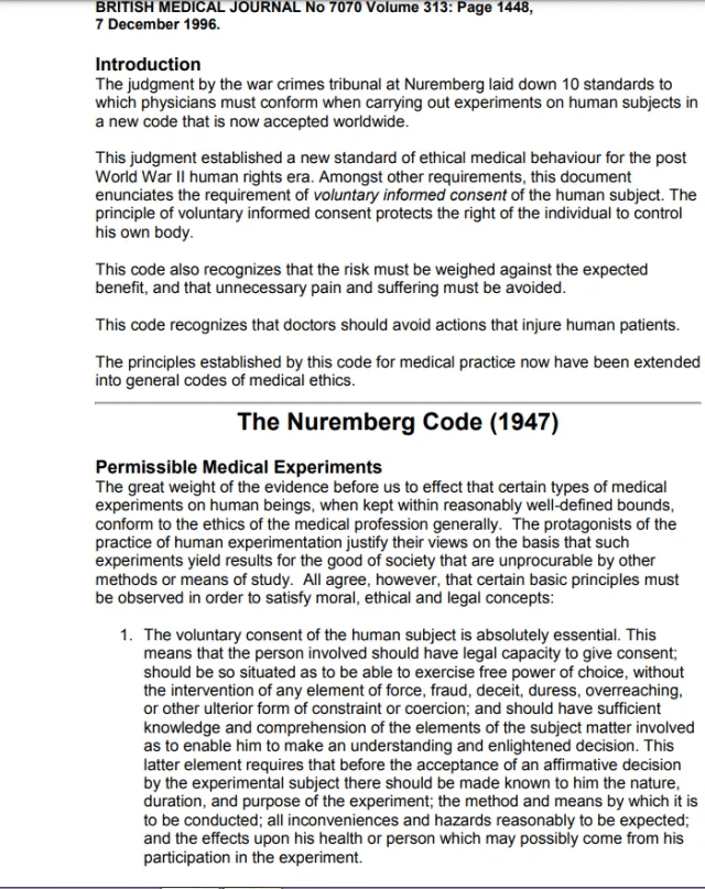 Nuremberg Code #1: Voluntary Consent is Essential