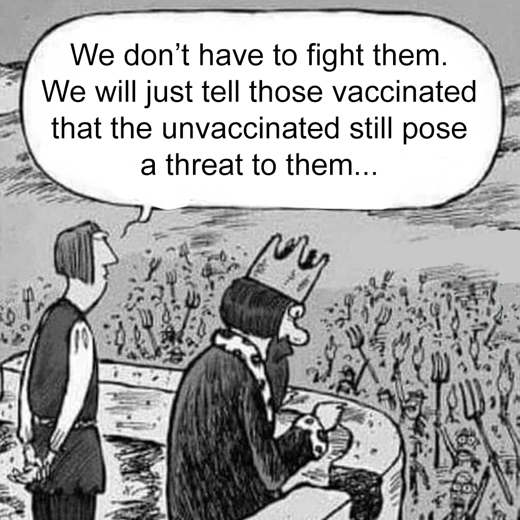 What are the societal consequences of being divided along the lines of vaccination status? What are the consequences of mandating such an insufficiently tested medical intervention? How is this all supposed to end well?