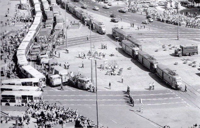 The picture above: organized by the “Solidarity” blockade of a major intersection in Warsaw, Poland (Rondo Waszyngtona) that took place on August 3-5, 1981. The then communist government of Poland described it as “extremist” and “criminal”, while all western governments supported it as a heroic struggle of the Polish people for freedom and human rights. Go figure!